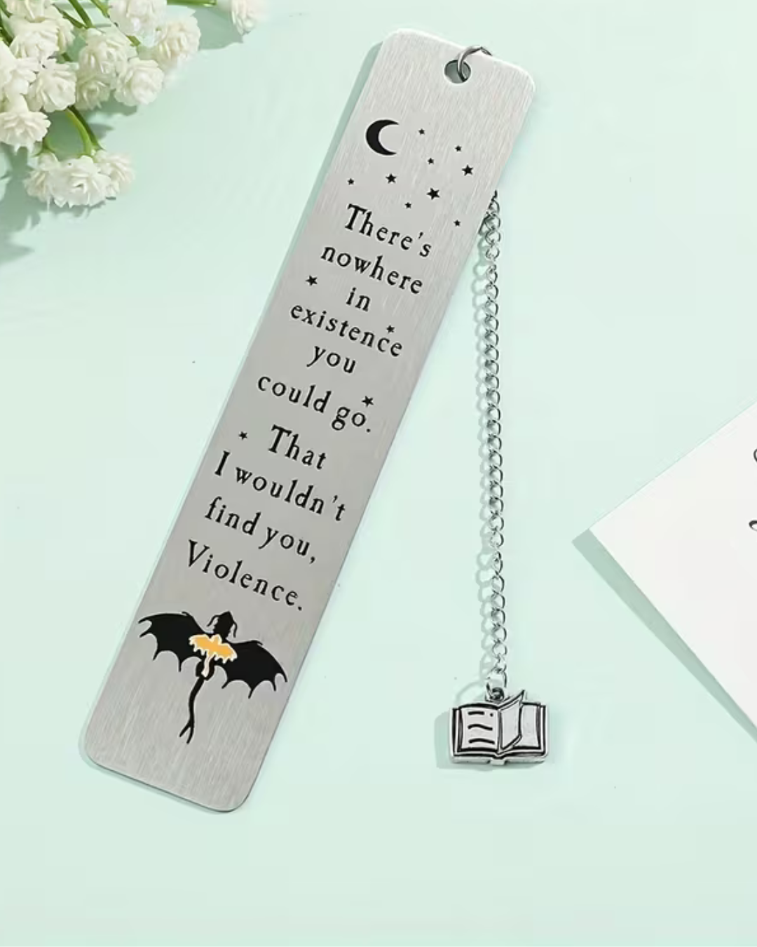 Marcapáginas de acero inoxidable inspirado de Fourth Wing (Alas de sangre).